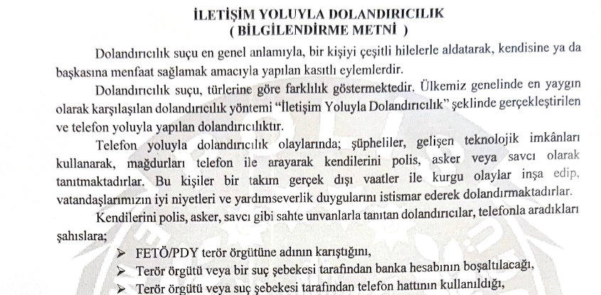 İletişim Yolu ile Dolandırıcılık Hakkında Bilgilendirme
